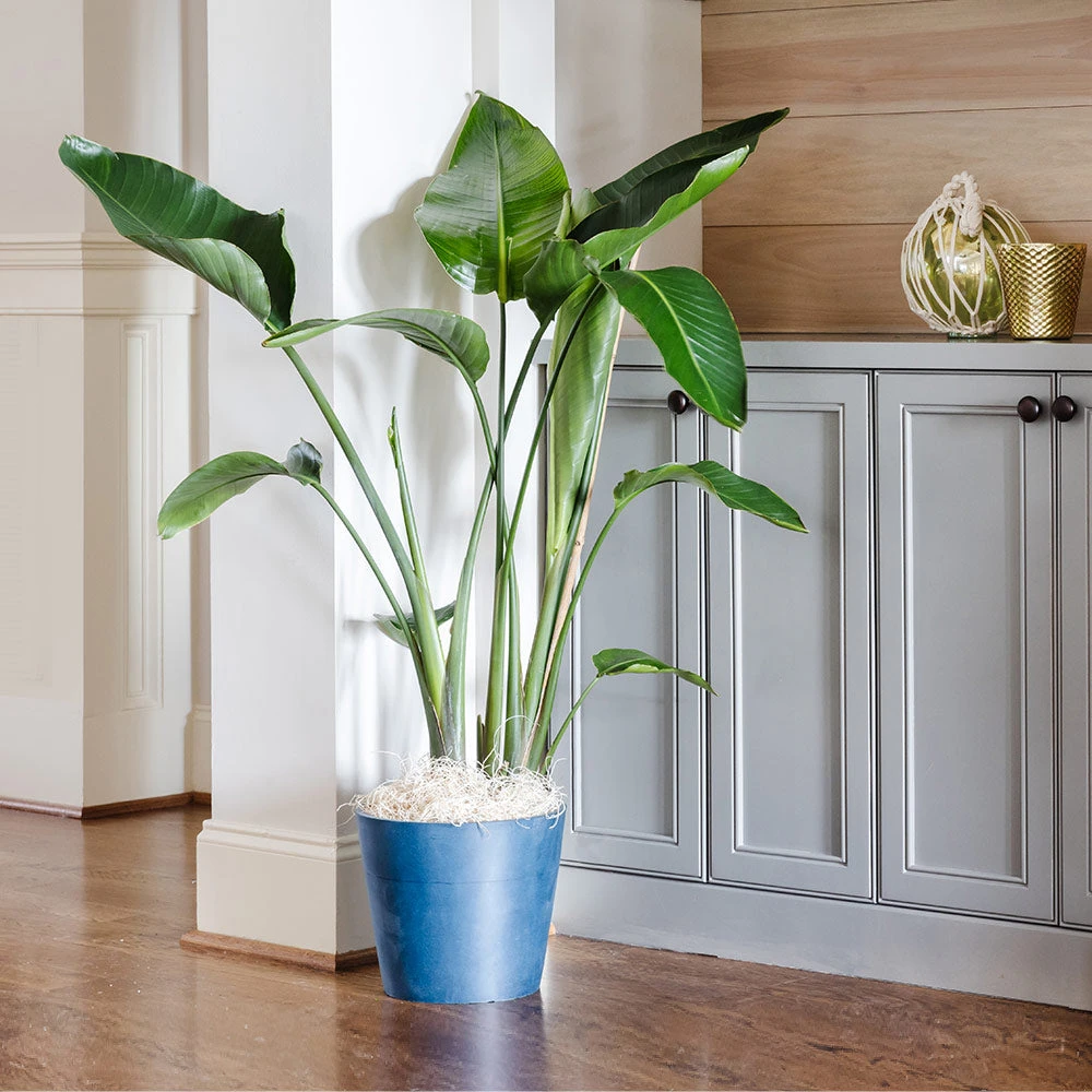 You won’t need to repot your Bird of Paradise right away, but when you’re ready, choose a pot that’s 1-2 inches larger than your plant’s shipped container, with good drainage. Remove your Bird of Paradise from its shipped container, place it in its new pot, and backfill with organic potting mix.